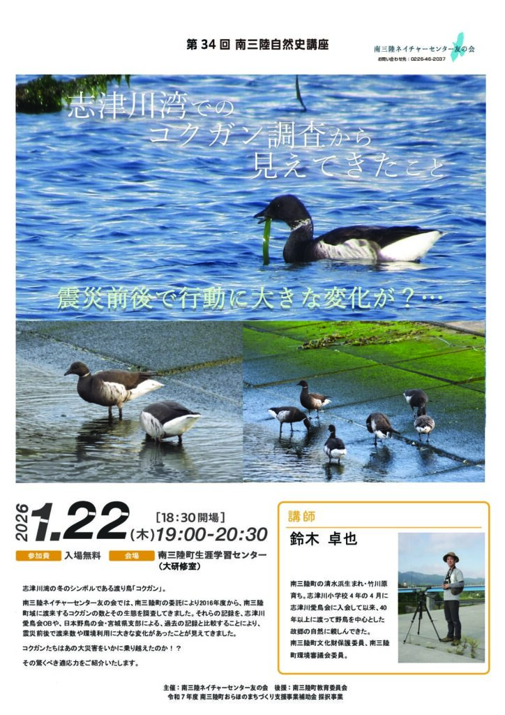 第34回南三陸自然史講座「自然史湾でのコクガン調査から見えてきたこと」